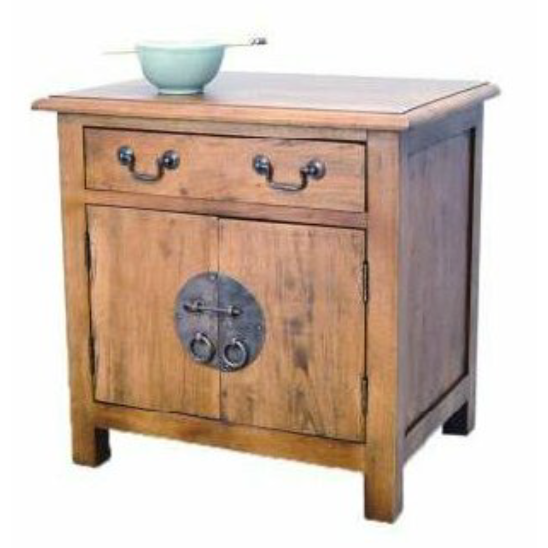 โต๊ะข้างเตียงไม้ดีไซน์จีน 2 ประตู 1 ลิ้นชัก – MD8169