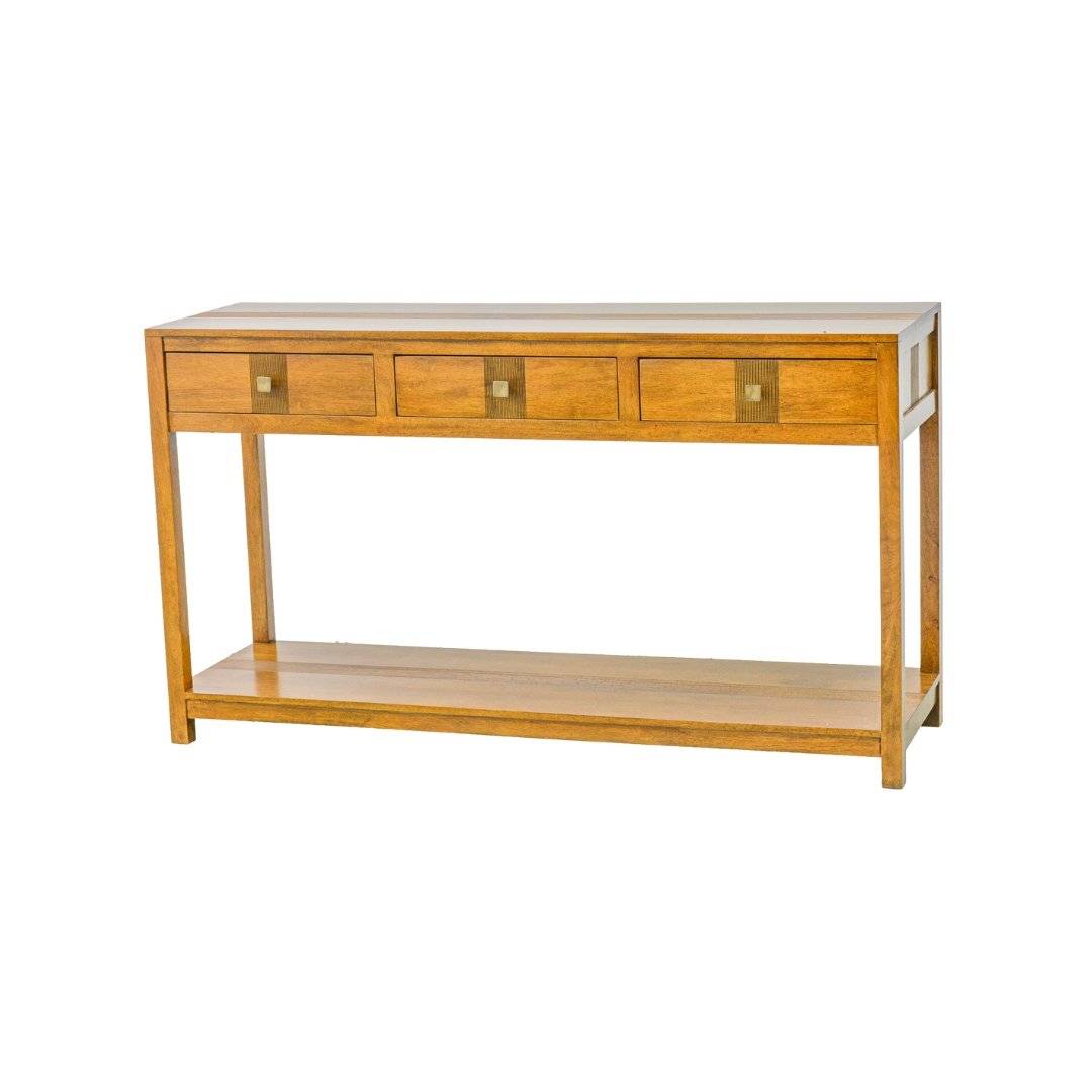 โต๊ะคอนโซลไม้แท้ รุ่น MD8701 ขนาด 150x45x85 ซม. เป็นโต๊ะตกแต่งที่มาพร้อมลิ้นชัก 3 ช่องสำหรับเก็บของ ช่วยเพิ่มความสะดวกและเป็นระเบียบในบ้านของคุณ ผลิตจากไม้แท้คุณภาพสูง แข็งแรงและทนทาน เหมาะสำหรับการตกแต่งห้องนั่งเล่น ห้องรับแขก หรือโถงทางเดิน ใช้จัดวางของตกแต่ง เช่น แจกัน กรอบรูป หรือสิ่งของสำคัญ พร้อมชั้นวางด้านล่างที่เพิ่มพื้นที่ในการจัดเก็บ