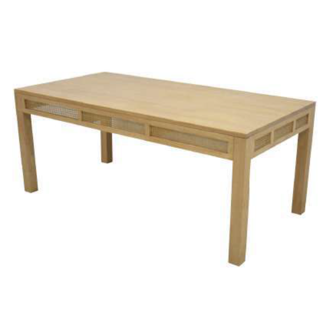 เติมเต็มความสวยงามให้พื้นที่รับประทานอาหารของคุณด้วย โต๊ะอาหารไม้ รุ่น MD9700-1KD โต๊ะดีไซน์เรียบหรู ผลิตจากไม้แท้คุณภาพสูง แข็งแรง ทนทาน ขนาด 180x90x76 ซม. ออกแบบมาให้เหมาะกับทุกสไตล์ของบ้าน สามารถรองรับผู้ใช้งานได้หลายที่นั่ง เหมาะสำหรับห้องอาหาร ครัว หรือร้านอาหารที่ต้องการเฟอร์นิเจอร์ที่ให้ความรู้สึกอบอุ่นและเป็นธรรมชาติ