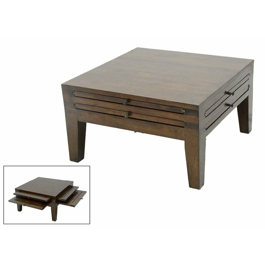โต๊ะไม้ 4 องค์ประกอบ รุ่น MD8100 ออกแบบมาให้มีฟังก์ชันการใช้งานที่ยืดหยุ่นและสะดวกต่อการใช้งาน ด้วยโครงสร้างที่สามารถปรับเปลี่ยนการใช้งานได้ ผลิตจากไม้แท้คุณภาพสูง แข็งแรง ทนทาน ขนาด 70x70x40 ซม. เหมาะสำหรับใช้เป็นโต๊ะกลาง โต๊ะกาแฟ หรือโต๊ะอเนกประสงค์ที่สามารถใช้งานได้หลากหลาย