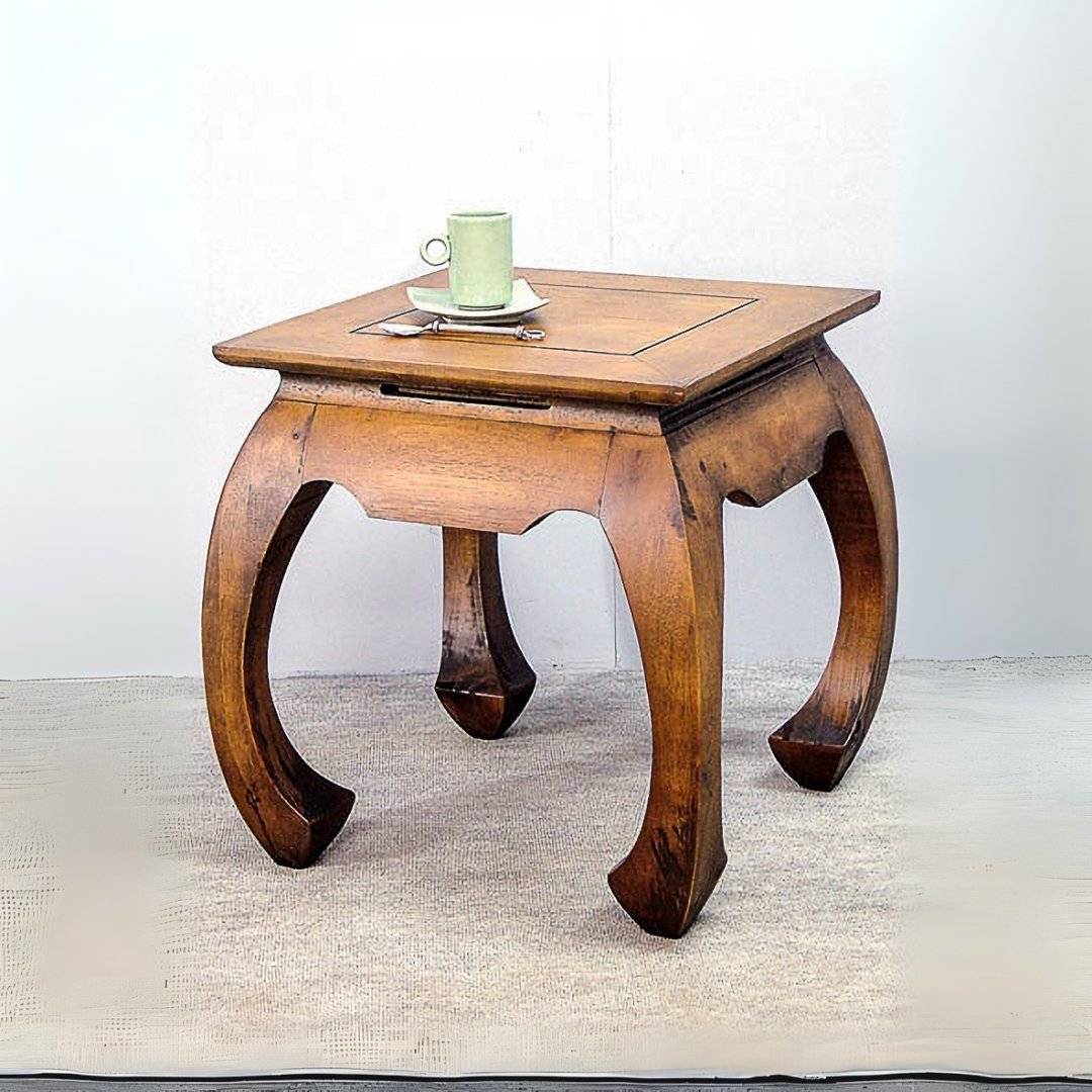 โต๊ะไม้สไตล์โอเปียม รุ่น MD8008 ออกแบบมาให้มีความคลาสสิกและโดดเด่นด้วยขาโค้งมนที่เป็นเอกลักษณ์ ผลิตจากไม้แท้คุณภาพสูง แข็งแรง ทนทาน ขนาด 56x56x56 ซม. พร้อมพื้นโต๊ะขนาด 50×50 ซม. เหมาะสำหรับใช้เป็นโต๊ะข้างโซฟา โต๊ะวางของ หรือเฟอร์นิเจอร์ตกแต่งบ้าน เพิ่มเสน่ห์แบบดั้งเดิมให้กับพื้นที่ของคุณ