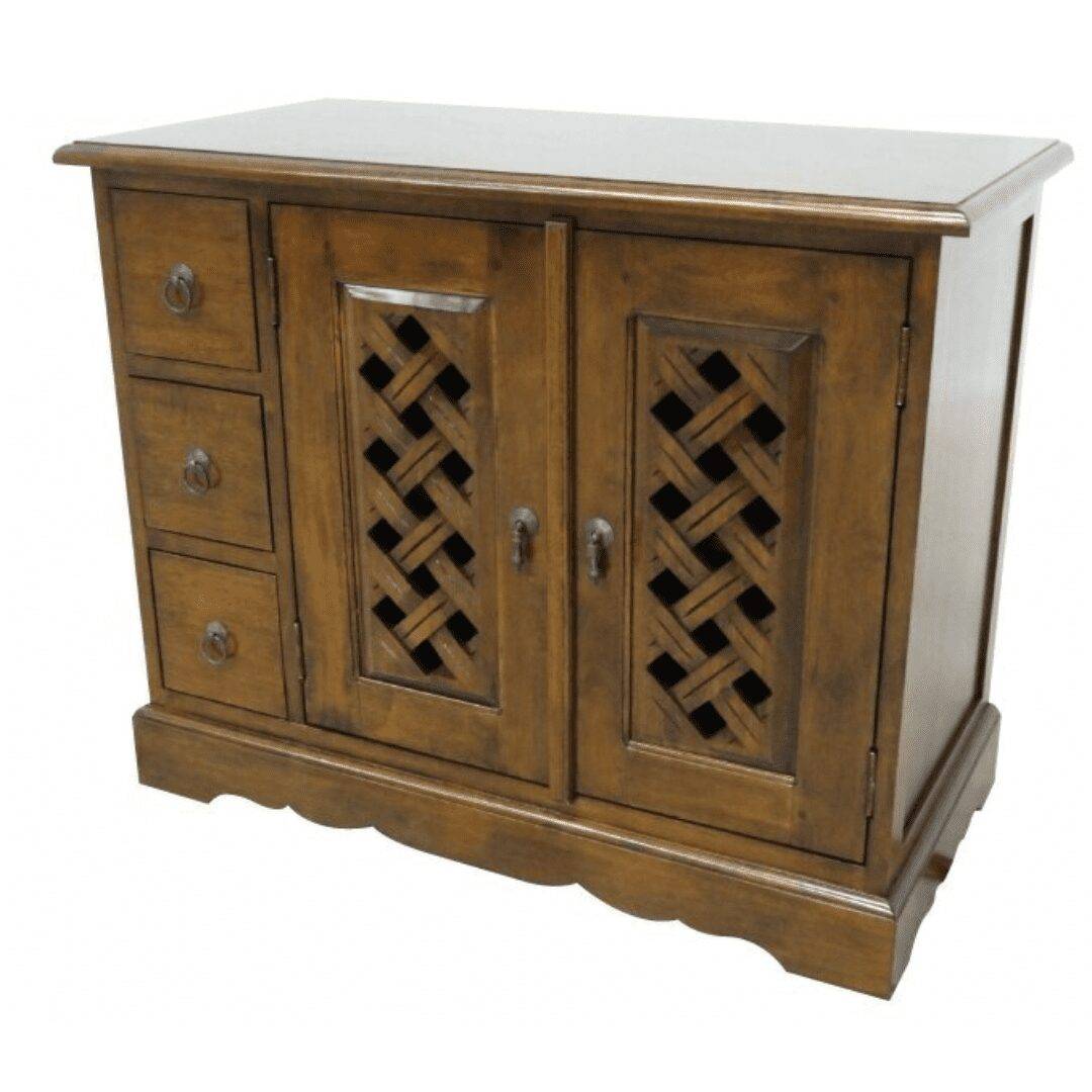 ตู้วางทีวีไม้ พร้อมลิ้นชัก รุ่น MD8030 ดีไซน์คลาสสิกที่มาพร้อมประตูไม้ฉลุลาย เพิ่มความสวยงามให้กับพื้นที่ภายในบ้าน ผลิตจากไม้แท้คุณภาพสูง แข็งแรง ทนทาน ขนาด 90×44.6×72.5 ซม. มี ลิ้นชัก 3 ช่อง และ บานประตู 2 บาน ให้คุณสามารถจัดเก็บของใช้ได้อย่างเป็นระเบียบ เหมาะสำหรับใช้เป็นตู้วางทีวี หรือตู้เก็บของในห้องนั่งเล่น